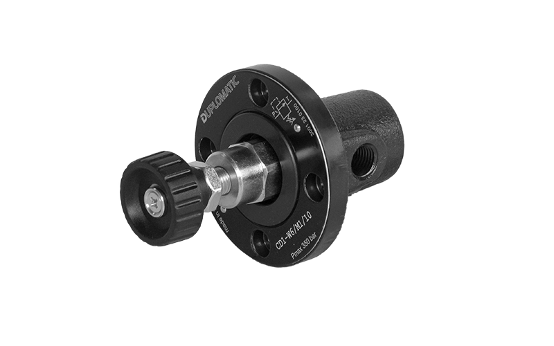 CD1-W are direct operated pressure relief valves with threaded ports ¼” NPT, for flange mounting. Those valves, are suitable for remote piloting of control valves and as pilot valve for two-stage pressure reducers. They are available in four pressure control ranges up to 350 bar. The pressure is adjustable by means of a socket hex adjustment screw or by a knob.