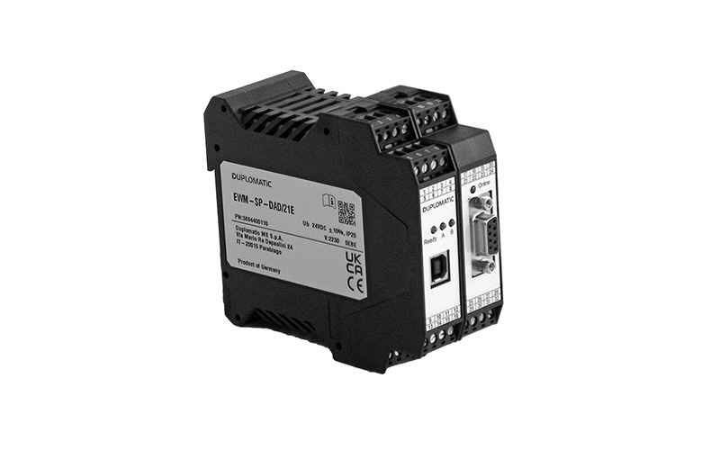 The EWM-SP-DAD digital card manages the position control with pressure limitation of hydraulic actuators equipped with a digital position sensor and analog pressure sensors. This card is an axis controller with two types of position control: stroke dependent deceleration (SDD) or numerical control (NC). It communicates with the PLC via the integrated Profibus interface. The output value, voltage or current type, has to be configured via software.